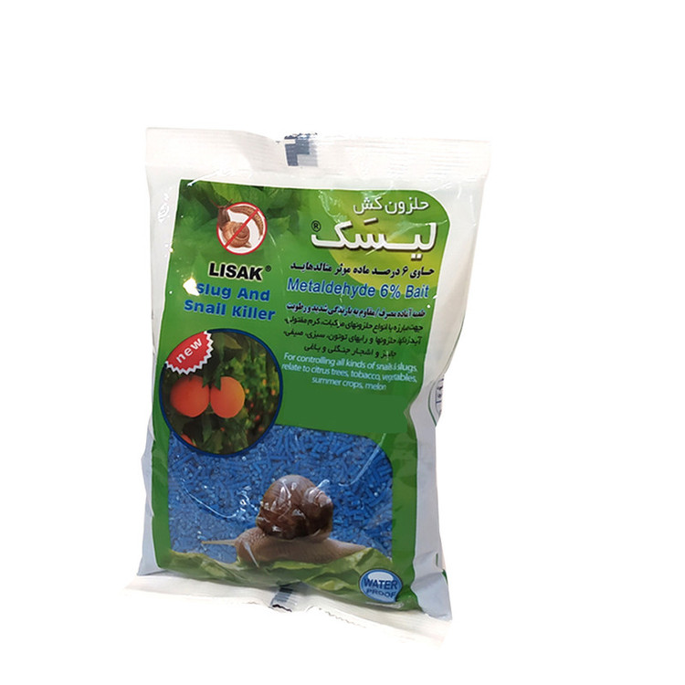حلزون کش لیسک® ضد آب (Water proof) حاوی متالدهايد 6%، به صورت پلت های کوچک استوانه ای ( طعمه آماده مصرف) تهیه و جهت مبارزه با حلزون های مرکبات، کرم های مفتولی، حلزون ها و راب های توتون، سبزی و صیفی، جالیز و اشجار جنگلی و باغی در مناطقی که رطوبت هوا و بارندگی زیاد است، به کار برده می شود