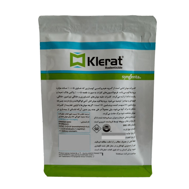 طعمه موش کلرات ماده بسیار موثری است که در نابودی اقسام موش مانند موش مغان، موش صحرایی و موش خانگی به بهترین وجه نتیجه می دهد. تغذیه روزانه حتی کمتر از یک میلی گرم ماده موثر کافی است که بعد از 4 تا 5 روز موش ها معدوم شوند. موش ها بدون نگرانی از مسمومیت به سراغ راکومین رفته با میل و رغبت از آن تغذیه می کنند. مرگ موش ها در اثر راکومین مانند مرگ به علت پیری رفته رفته در جانور ظاهر می شود و به این علت موش های دیگر متوجه علت آن نمی شوند. خوردن موش هایی که با راکومین مسموم شده اند برای گربه ها خطری ندارند.