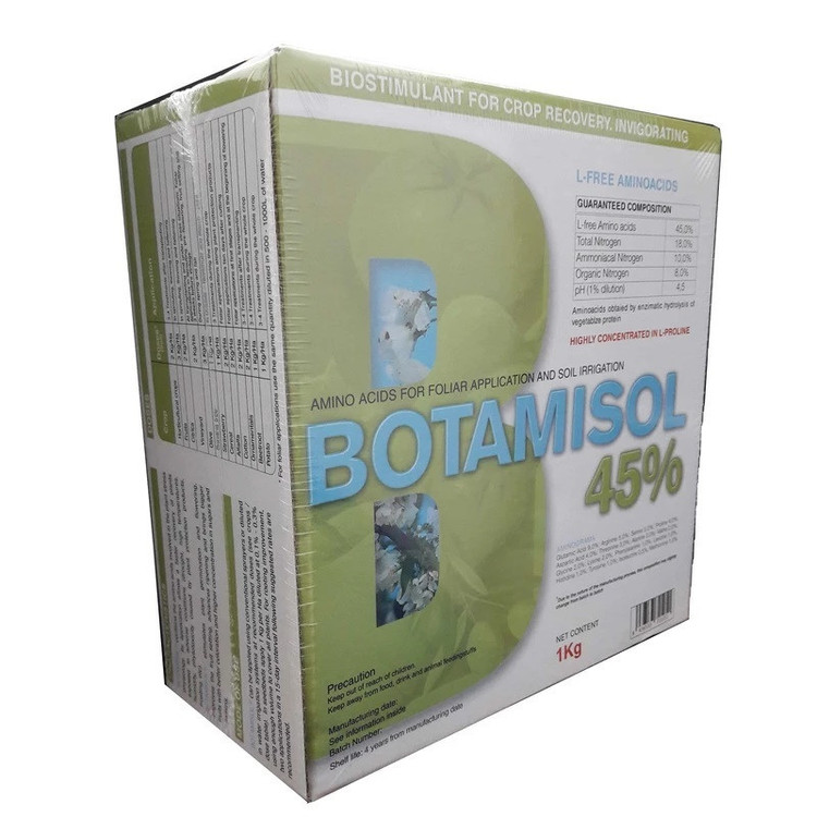 بوتامیسول محصول کاملا اختصاصی جهت پیشگیری و کاهش خسارت ناشی از انواع تنشهای محیطی در محصولات زراعی, باغات و گلخانه است. بوتامیسول حاوی 45 درصد اسید آمینه آزاد (Free L Amino Acids) است که از هیدرولیز آنزیمی گیاهان بدست آمده است. بوتامیسول دارای درصد بالایی از اسید آمینه پرولین میباشد که در هنگام تنشهای محیطی باعث افزایش توان مقاومت گیاه به تنشهای خشکی, گرما, سرما, یخبندان و سمیت سموم میگردد. در ساير مراحل رشدي نيز مي توان بوتامیسول فیوچراکو اسپانیا را بصورت تركيب با سموم و كودهاي تغذيه اي استفاده كرد و رشد و عملكرد محصول را افزايش داد. بوتاميسول سبب پيشگيري و افزايش مقاومت گياهان به تنش هاي محيطي خواهد شد. همچنین کود پودری بوتامیسول در افزايش تشكيل گل و ميوه، بهبود فرآيند هاي رشدي و رسيدگي ميوه ها بسيار موثر است. بوتاميسول با كليه كودها و سموم كشاورزي قابل تركيب می باشد. مصرف کود بوتامیسول موجب افزایش کیفیت میوه نیز خواهد شد.