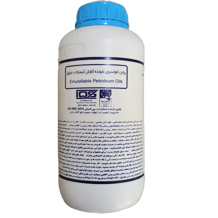 درجه سولفوناسیون حداقل ۹۲% نام عمومی Petrolium oils ترکیبات ۸۰ درصد پارافین با بهترین کیفیت، ضد قارچ، امولسیفایر و غلظت دهنده برای مبارزه با کنه قرمز و کنه نقره ای بسته به زمان مصرف دوز ۷تا ۲۰لیتر در هزار توصیه می گردد