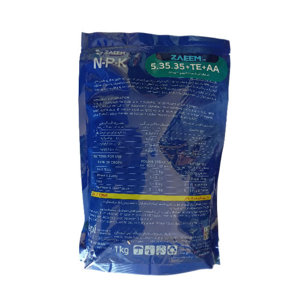 کود 35-35-5 زعیم محصولی دیگر از گروه زعیم می باشد که در بسته های یک کیلویی برای کشاورزان و پرورش دهندگان گل و گیاه عرضه شده است. در این کود 5 درصد نیتروژن، 35 درصد فسفر و 35 درصد پتاسیم می باشد. همچنین در کنار عنصراصلی مورد نیاز گیاه آمینواسید هم وجود دارد که در برابر تنش های محیطی مقاومت گیاه را بالا می برد. همچنین از این کود می توان به عنوان فسفیت پتاسیم نیز استفاده کرد که باعث رشد گیاه و افزایش مقاومت گیاه در برابر بیماری ها و آفات می شود.