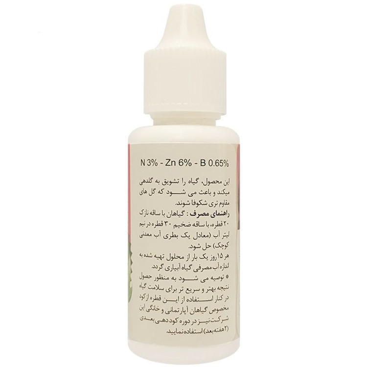 داشتن گیاهانی سالم و زیبا نیازمند مراقبتهایی ویژه است. این مراقبتها با توجه به نوع گیاه متفاوت بوده و باید برای هر گیاه اقدامات خاصی انجام گیرد. انتخاب نوع کود، امری بسیار مهم و ضروری برای گیاهان محسوب میشود، در این میان محصولات متنوعی برای گیاهان تولید و عرضه میشود. محصولی که در تصویر مشاهده مینمایید «کود قطره مخصوص گلدهی» میباشد که به سفارش گیلدا در شرکت «سپهر پارمیس» تولید گردیده و توسط شرکت «گیلدا» عرضه میگردد.این کود حاوی نسبت متعادلی از 3 عنصر پرمصرف مورد نیاز گیاهان جهت گلدهی و تقویت عمومی می باشد که بخش قابل توجهی از آن را کودهای نیتروژن، روی و بور تشکیل داده است.